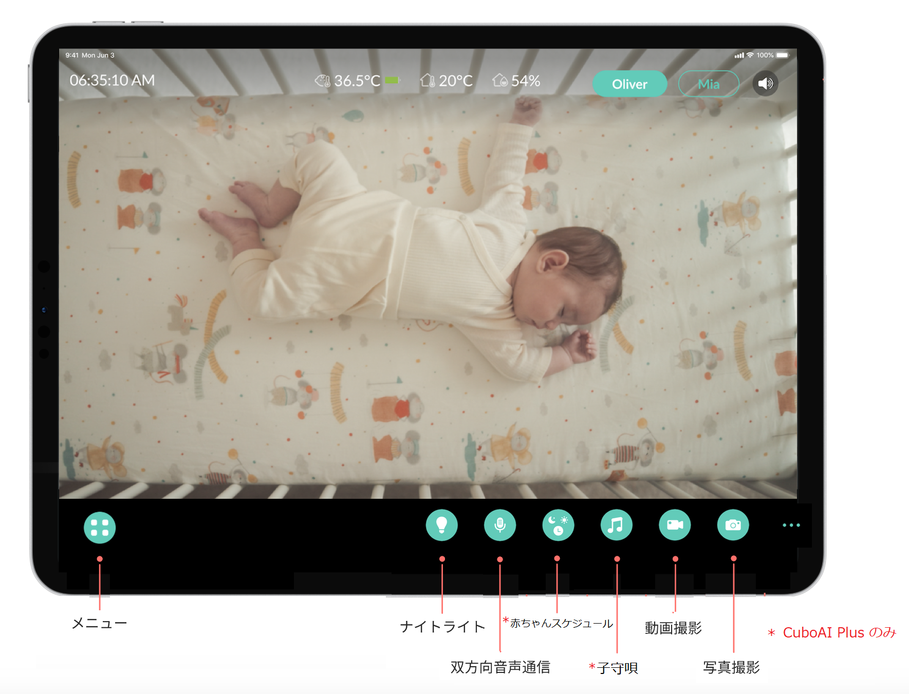 3.第1世代のCuboAiおよび第2世代のCuboAi Plusベビーモニターは共にこの機能に対応しております。