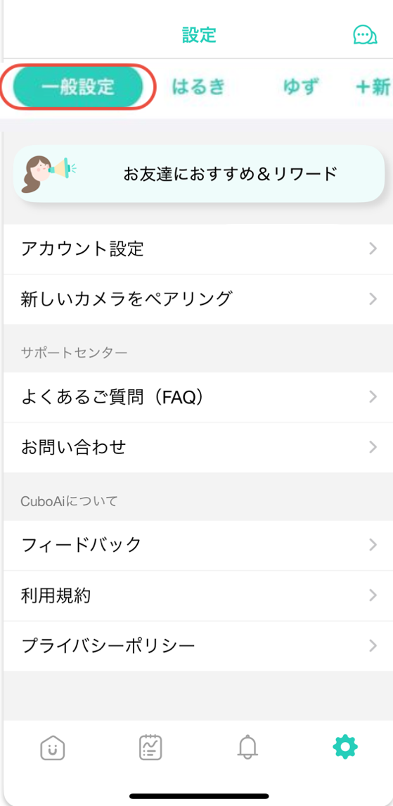 - CuboAiアプリ:設定 > 一般設定 > お問い合わせ