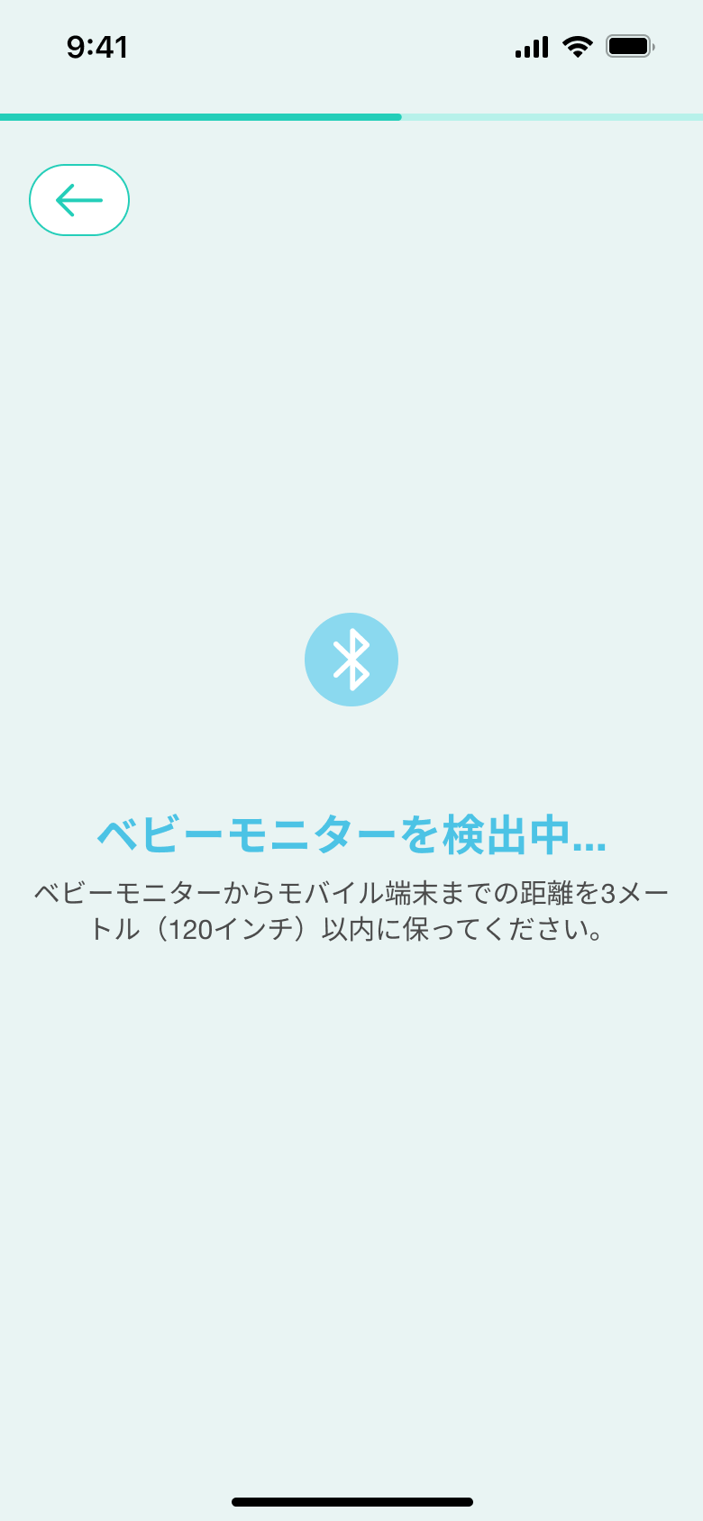 ④Bluetoothを許可した後、ベビーモニターを検出し始めます。(既にBluetoothした場合に⑤に進みます。)