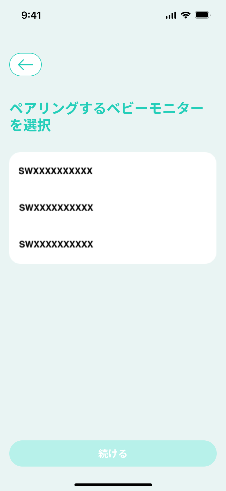 ⑤複数ベビーモニターを持っている場合、複数のベビーモニターが検出され、ベアリングするベビーモニターを選択します(SWが始める製品番号)。(ベビーモニターが複数持っていない場合、そのまま⑥に進みます。)