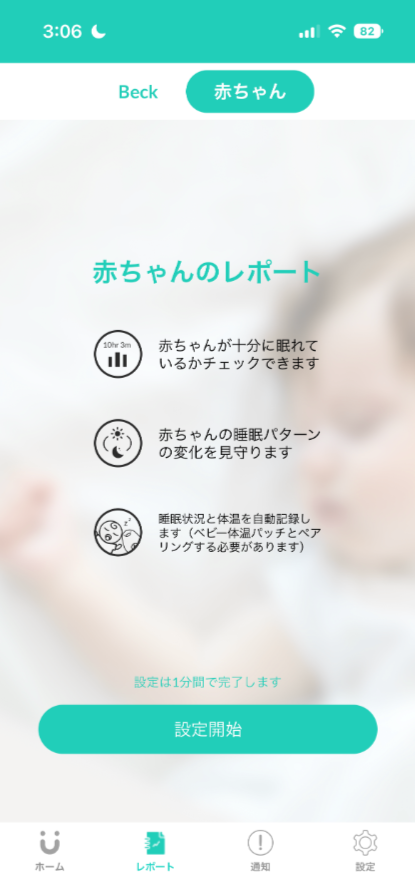 CuboAiアプリより各ベビーモニターの睡眠分析の設定をすることで、それぞれの睡眠レポートを受け取れます。
