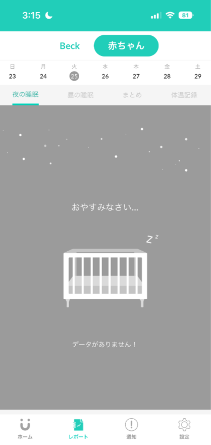 睡眠レポートが不正確だった場合、ベビーモニターまたはベッドが睡眠分析を行う上での理想的な状況でない可能性があります。