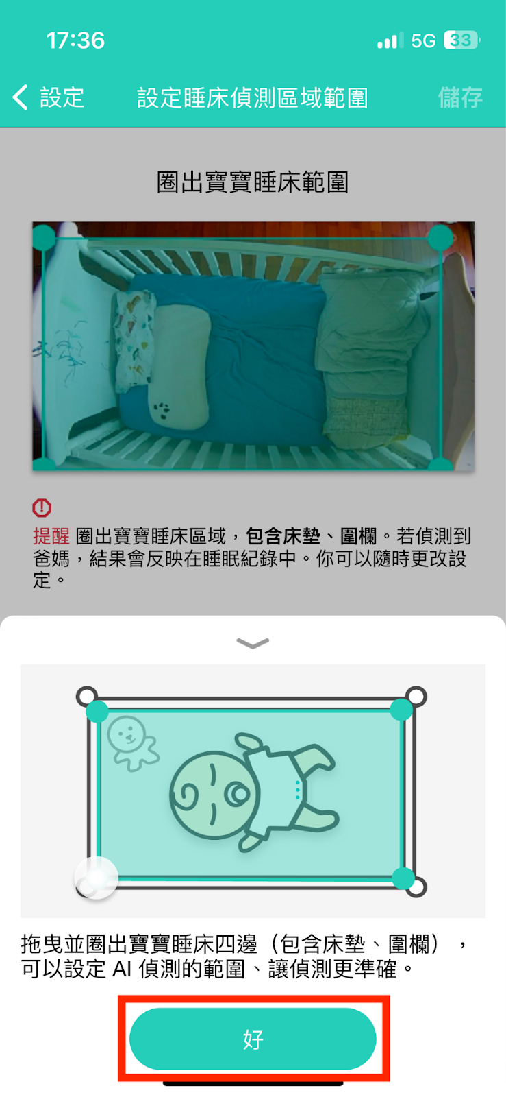 步驟3:點選設定睡床偵測區域範圍