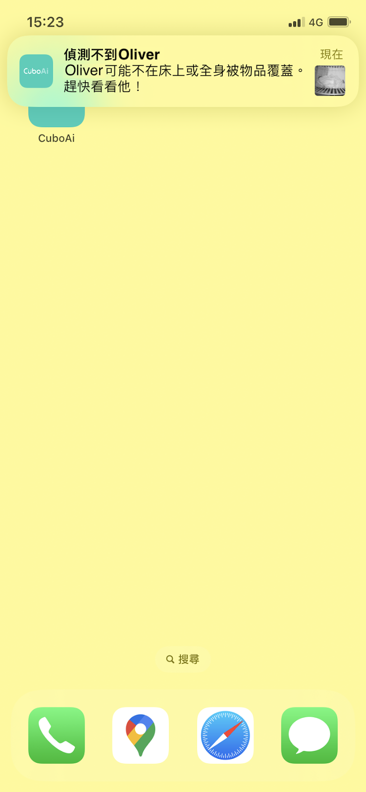 若 CuboAi 發現寶寶離開床上,或全身被異物覆蓋,就會馬上發出此通知,請盡快確認寶寶狀態
