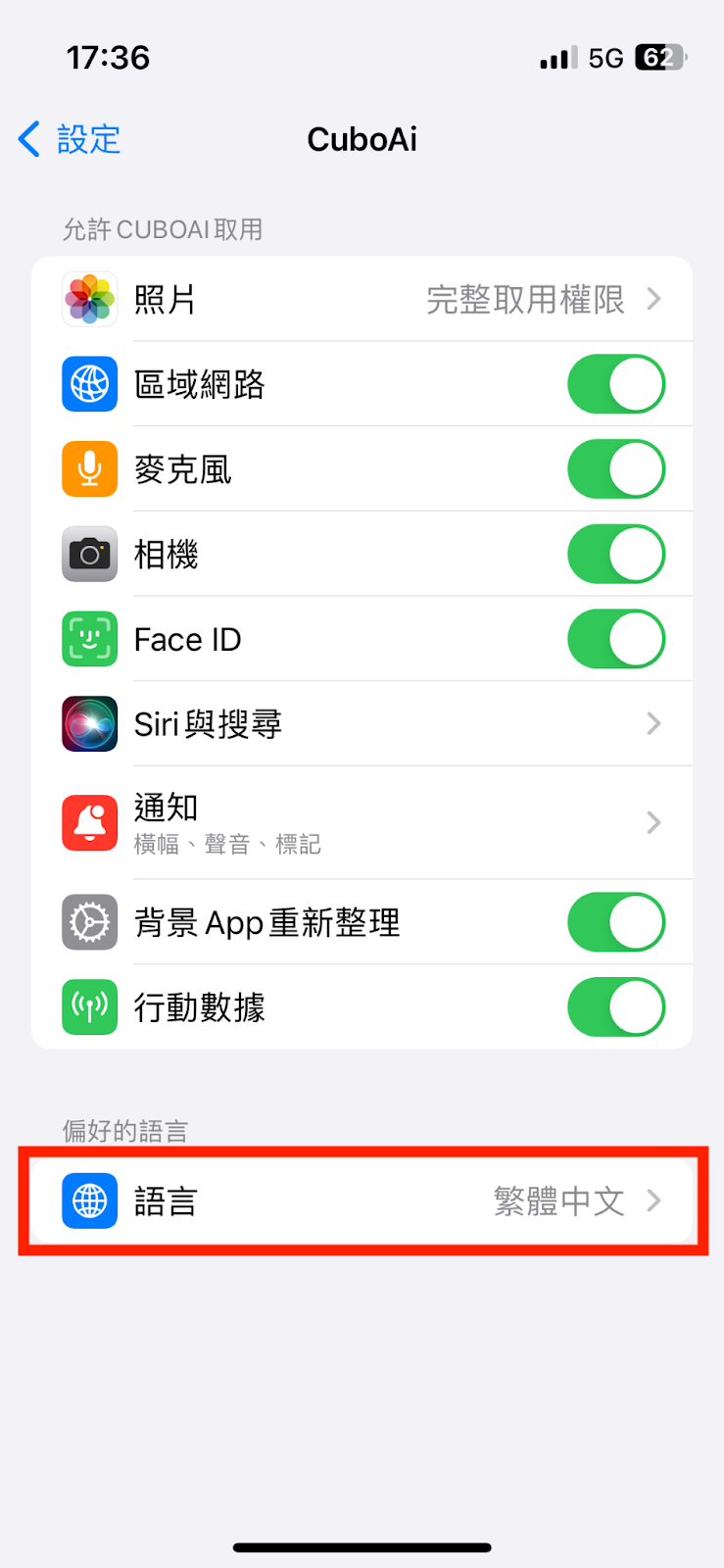 步驟3:再選擇「語言」即可找到欲設定的語言