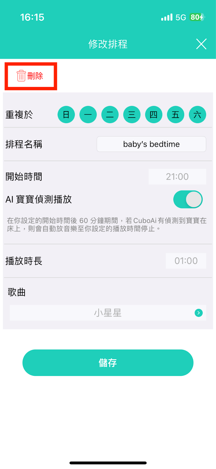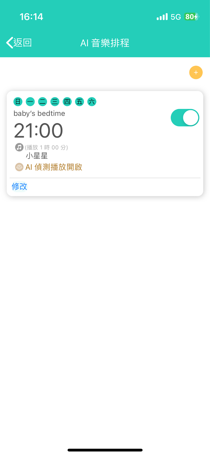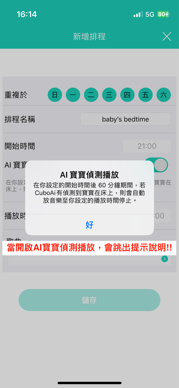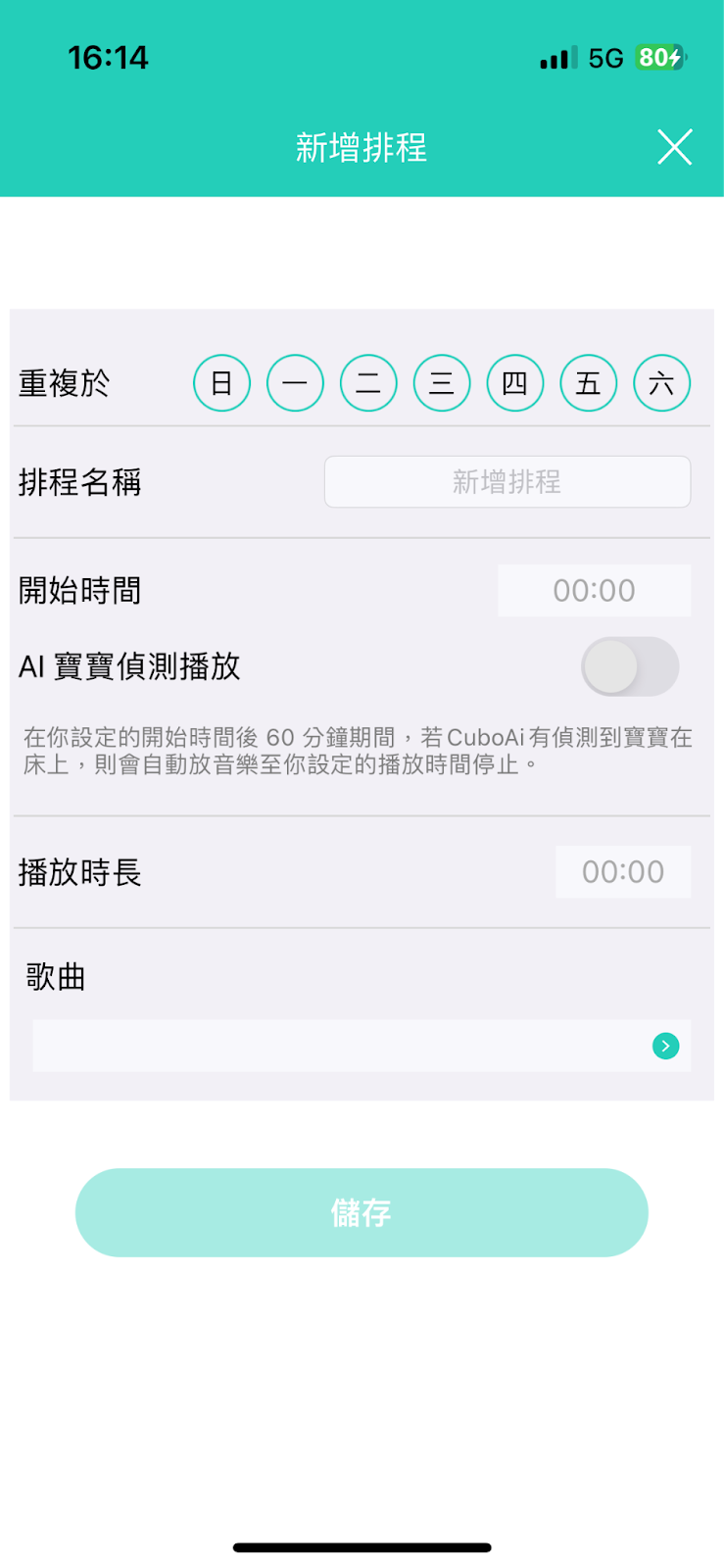 💡「AI 音樂排程」功能僅限訂閱 CuboAi Care Premium 或 CuboAi Care Ultimate 方案可以使用。