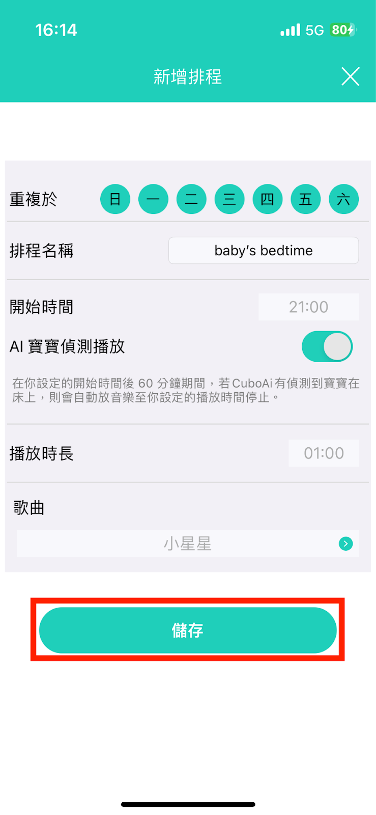 步驟4:點擊儲存後回到排程主頁,爸媽即會看到設定好的排程