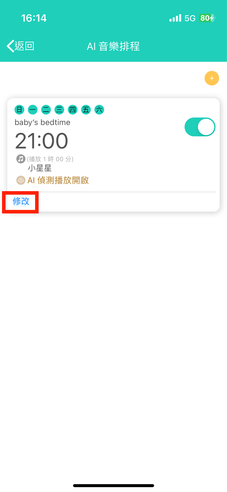 步驟1:請至音樂排程主頁,找到想修改的排程後,點擊左下「修改」按鈕