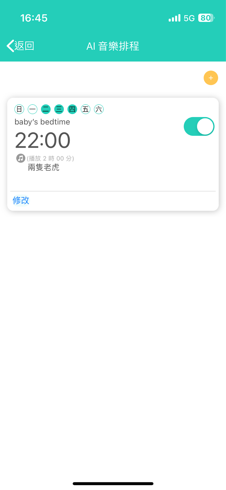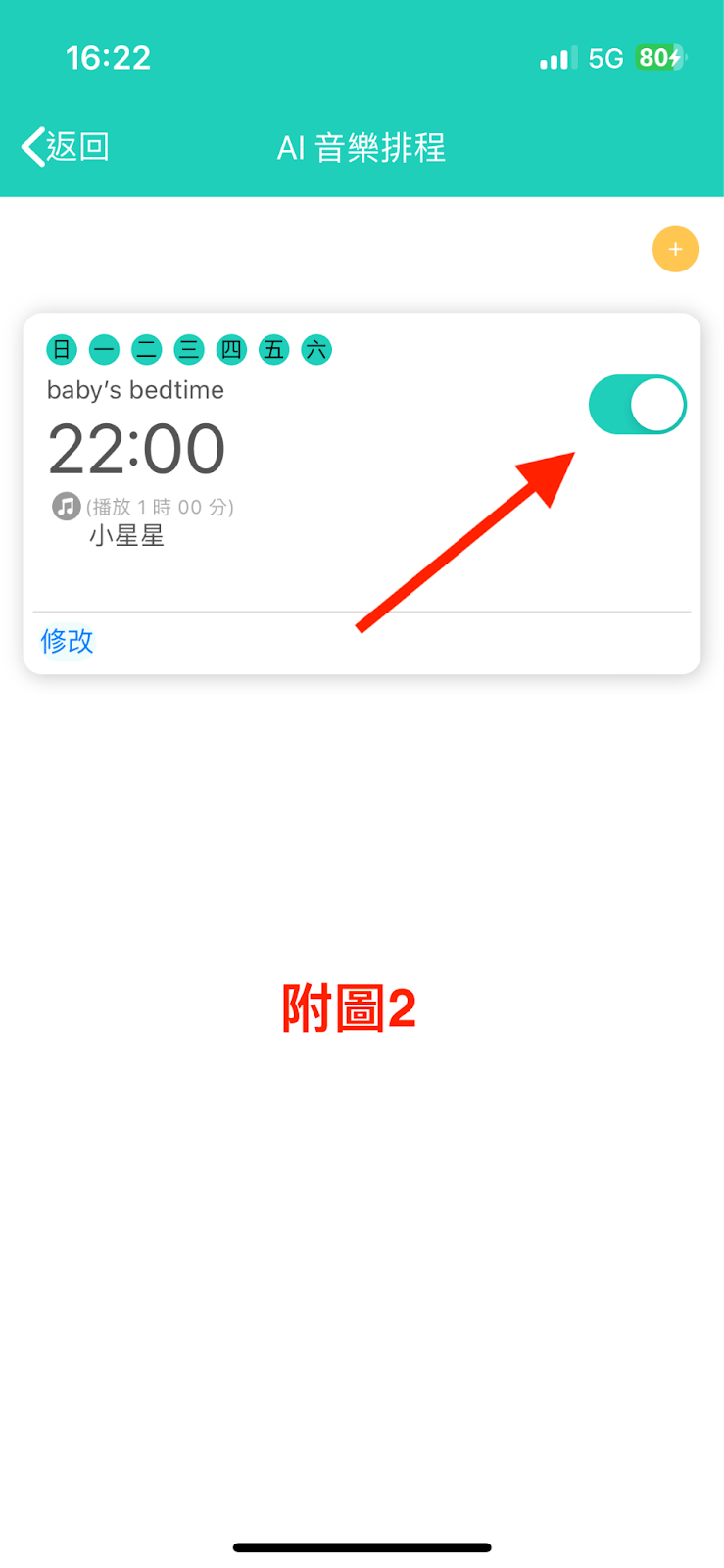 步驟1:於App主畫面點擊搖籃曲區間空白處,進入後右上方會看到AI音樂排程的按鈕